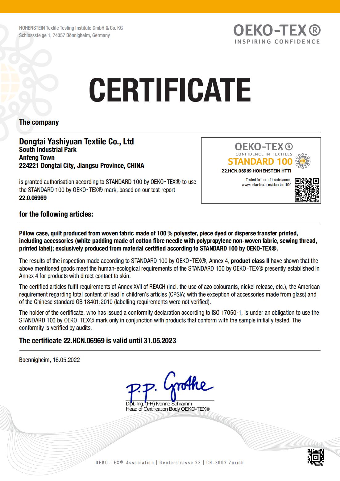 荣誉资质-东台雅士缘纺织有限公司